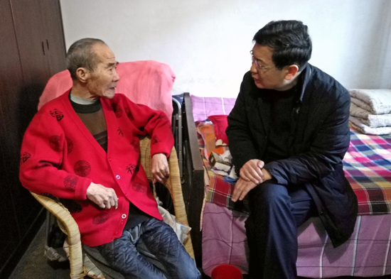 在新春佳节即将来临之际,院党委副书记、纪委书记邱文鹏一行走访慰问离休老干部和抗美援朝老兵,为他们送去院党委的关怀和新春的祝福,党群工作部有关同志陪同看望。 每到一处,邱书记都与老同志亲切握手交谈,一边和他们拉着家常,一边详细询问他们的饮食起居和身体状况,年货准备情况,生活中还有什么困难。还为他们送去了米、面、油等慰问品,感谢离休老干部和抗美援朝老兵长期以来为祖国建设和我院的发展所做出的重要贡献,对抗美援朝老兵不怕牺牲的革命精神致以崇高的敬意,祝愿老同志们健康长寿,生活幸福,并要求党群工作部要时刻关心帮助老同志,切实解决他们遇到的困难,让老同志们安心颐养天年。 老同志们对组织上的关心表示衷心的感谢,握住慰问人员的手久久不放,幸福之情溢于言表。(刘孝克)