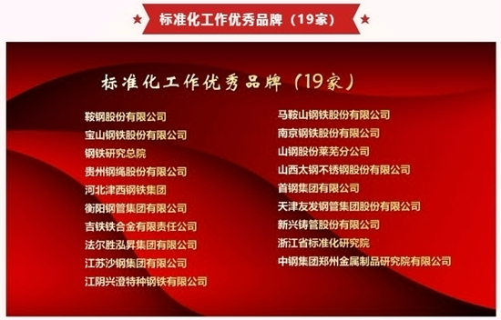 会上发布了钢铁企业优秀品牌,其中标准化工作优秀品牌企业19家,科技宣传优秀品牌企业15家,信息情报优秀品牌企业15家,知识产权优秀品牌企业14家,绿色低碳优秀品牌企业16家,智能制造优秀品牌企业15家。我院荣获“标准化工作优秀品牌”奖,多年来我院一直将标准工作放在重要位置,对标准工作兢兢业业,一丝不苟,完成多项国家标准或行业标准的制修订工作,此次获此殊荣,是国家和行业对我院标准工作阶段成果的肯定。