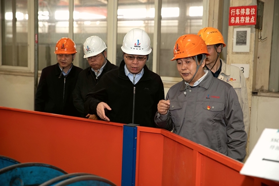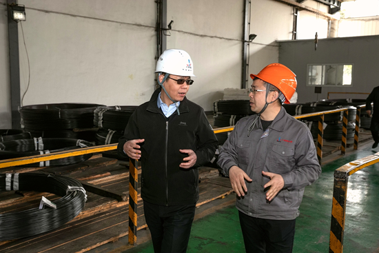 中国宝武副总经理高建兵一行莅临我公司考察调研 3月8日,中国宝武副总经理高建兵一行莅临我公司考察调研,中国宝武新材料产业发展中心总监李永东、中钢集团副总经理宫敬升、中钢集团科技创新部总经理许定胜陪同调研。 高建兵一行在公司董事长、总经理毛海波、副总经理李中山、洪涛、杨永红的陪同下,深入生产一线,先后参观了质检中心、中钢郑州精密、弹材分厂等,实地查看生产运行情况,了解生产工艺。
